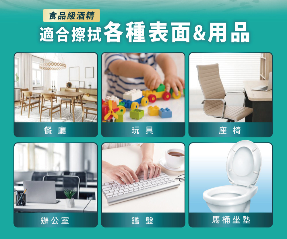 1. 瞬效殺菌:添加德國默克食品級酒精,擦拭物品表面,隨時清潔更安心。