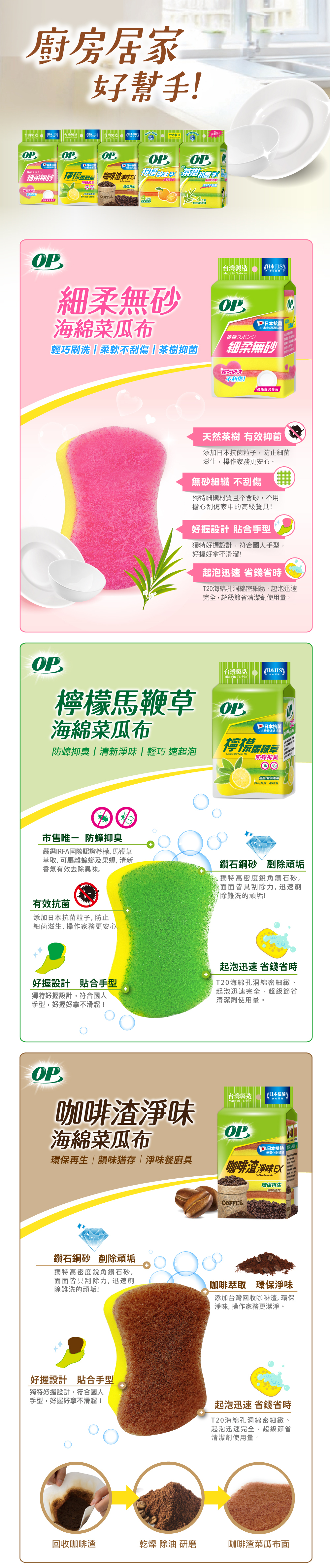 材質/成份:尼龍纖維、鑽石鋼砂、樹脂、泡棉、檸檬萃取、馬鞭草萃取、香茅精油、日本抗菌粒子